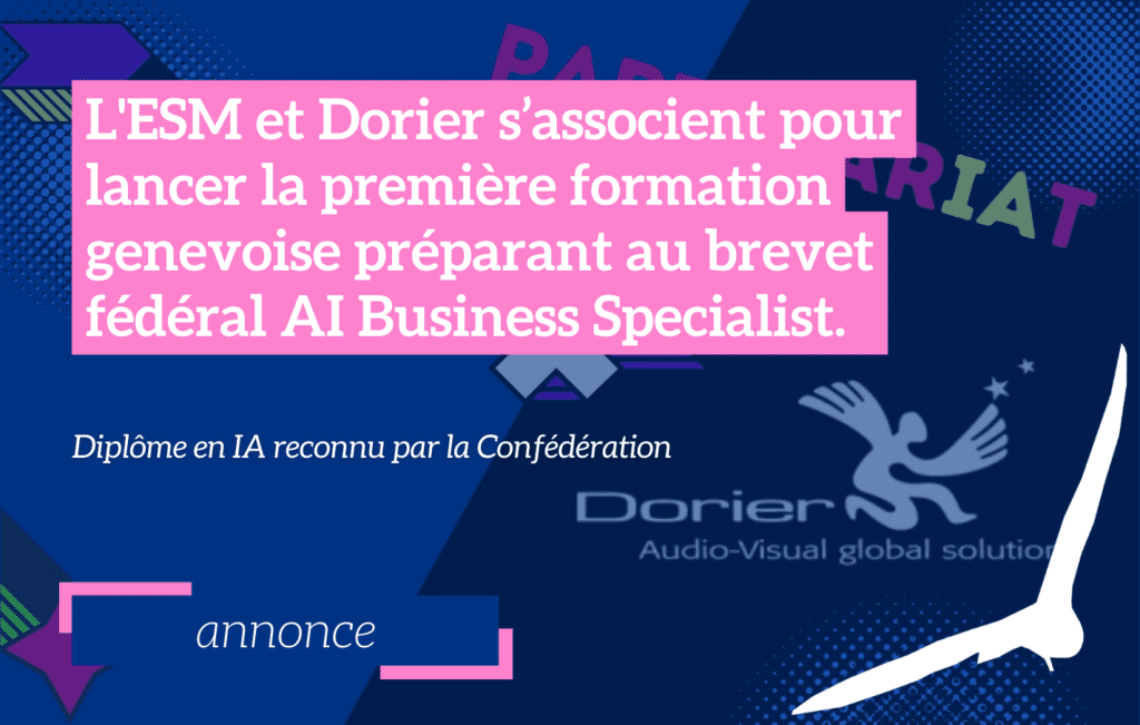 L’ESM et Dorier s’associent pour lancer la première formation genevoise préparant au brevet fédéral AI Business Specialist.