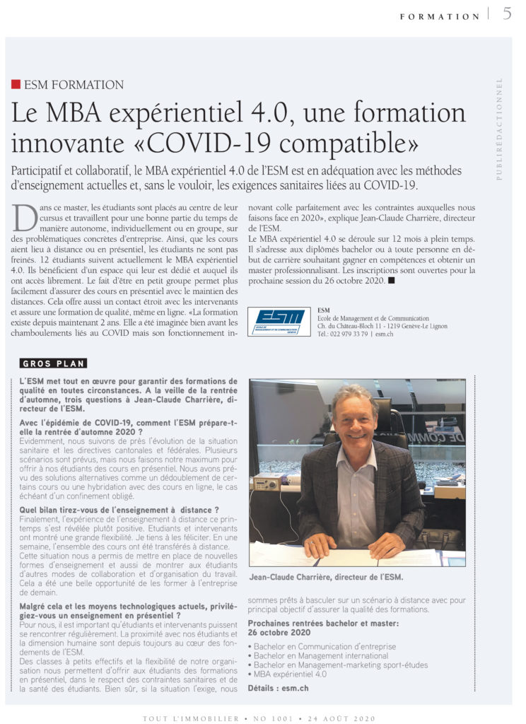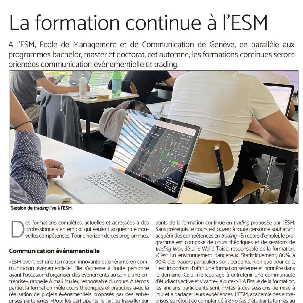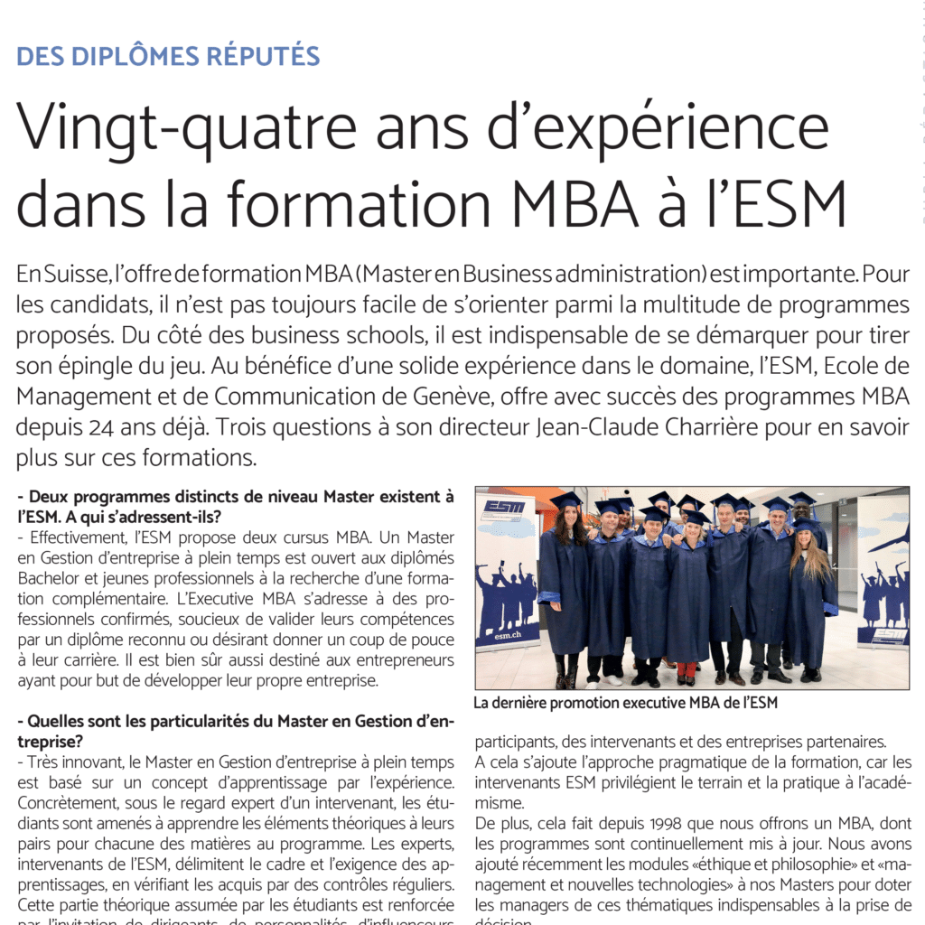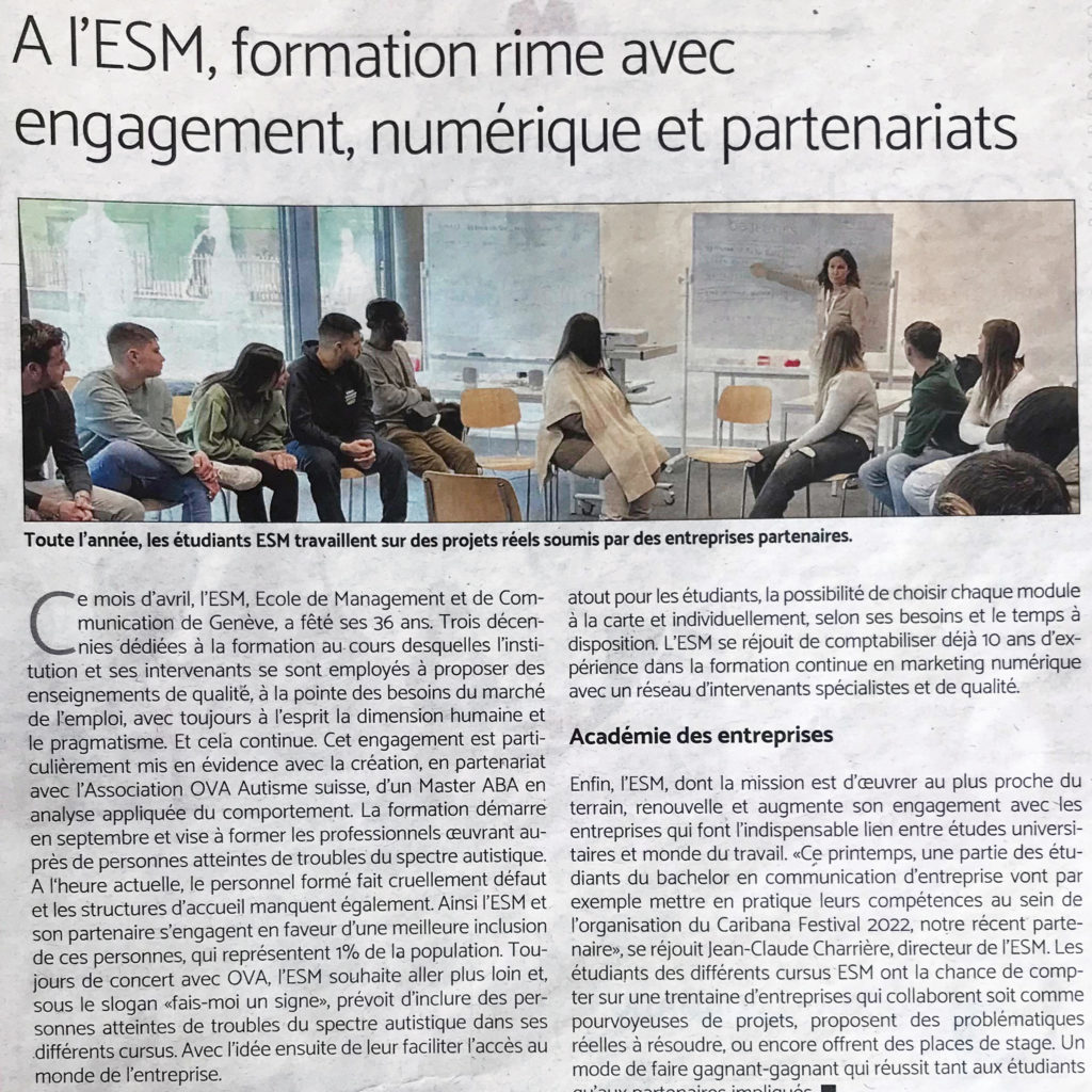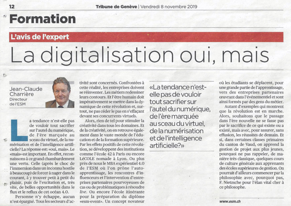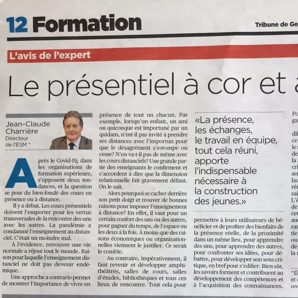 La Tribune de Genève consacre une interview à Jean-Claude Charrière, fondateur de l’ESM Genève