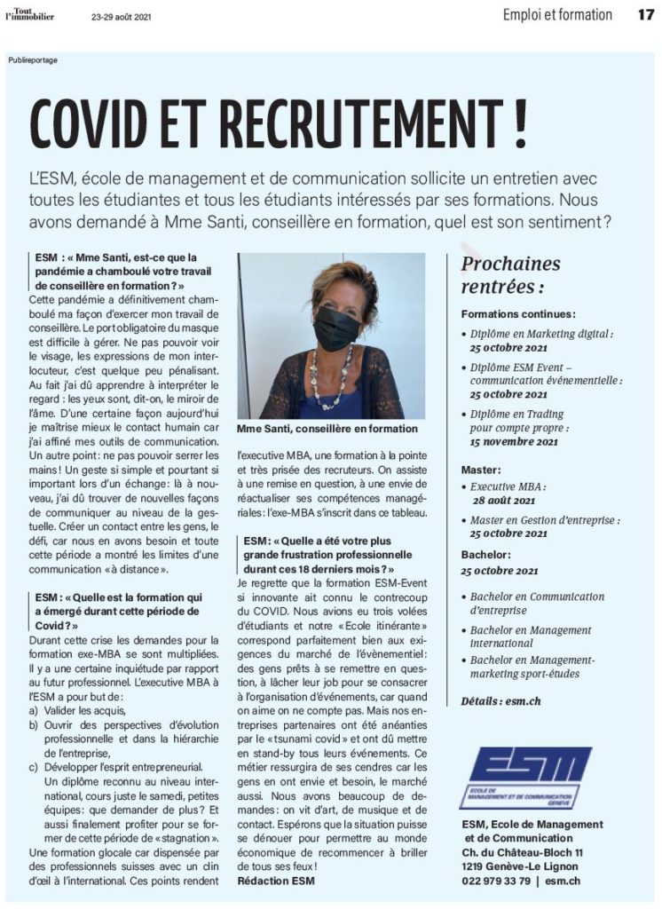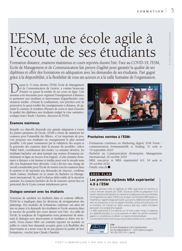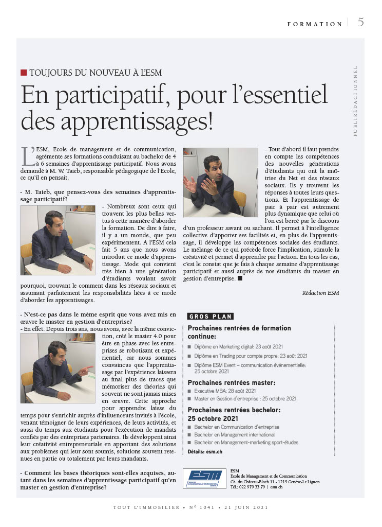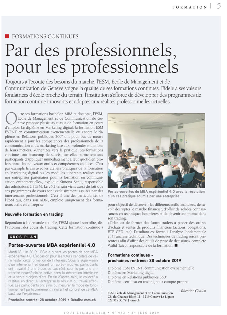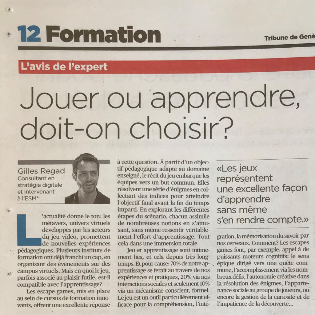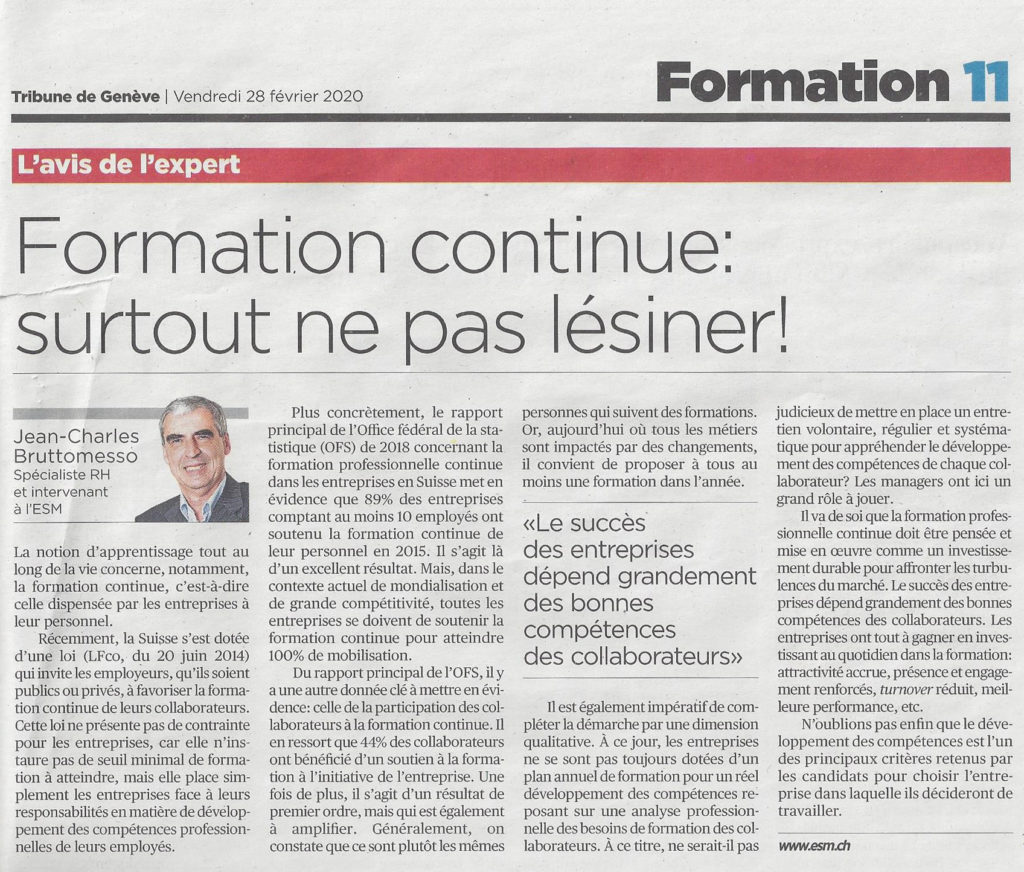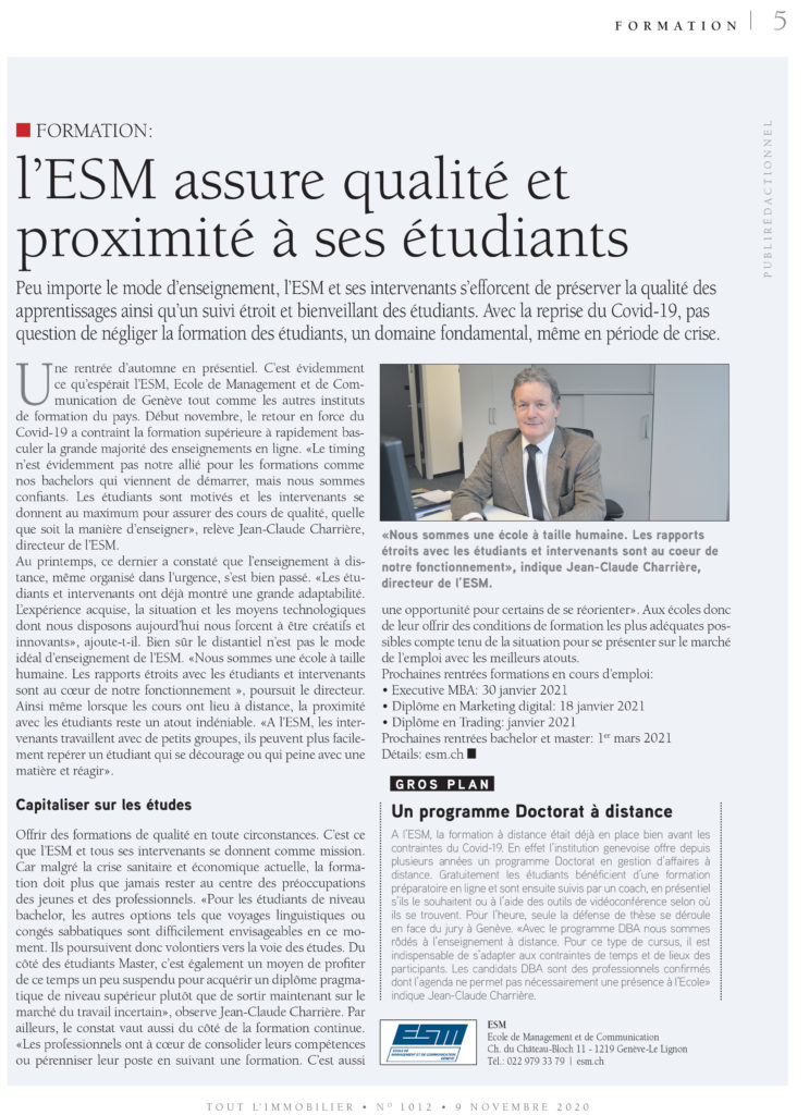 La Tribune de Genève consacre une interview à Jean-Claude Charrière, fondateur de l’ESM Genève
