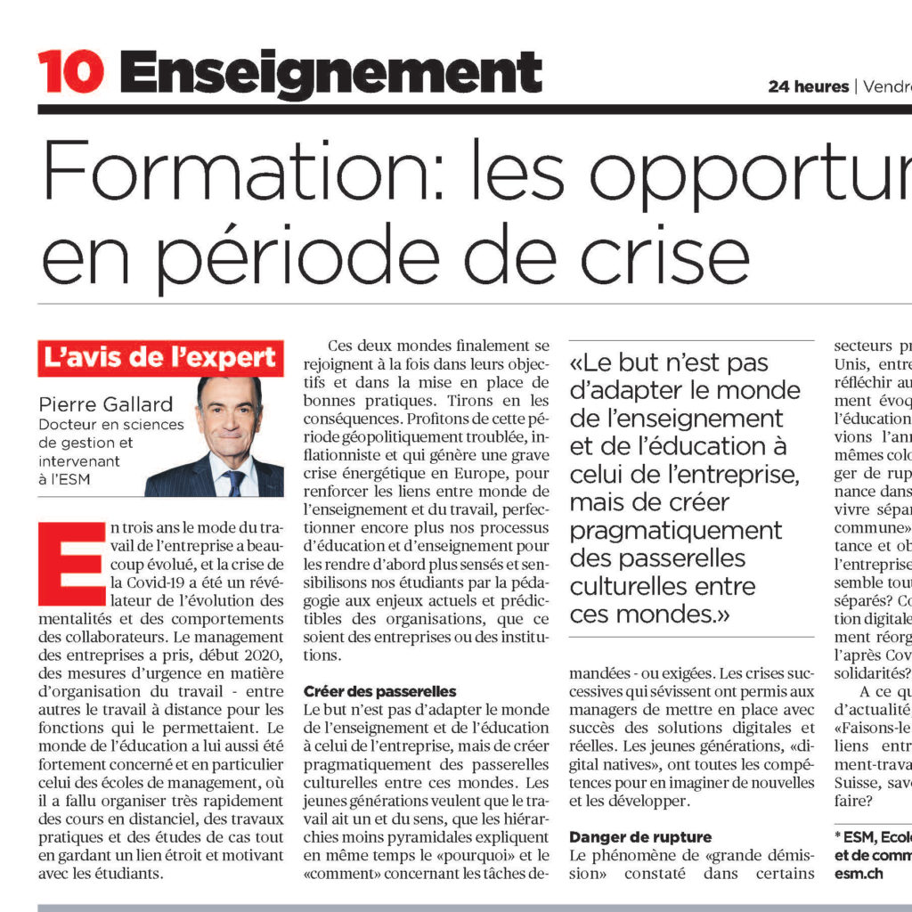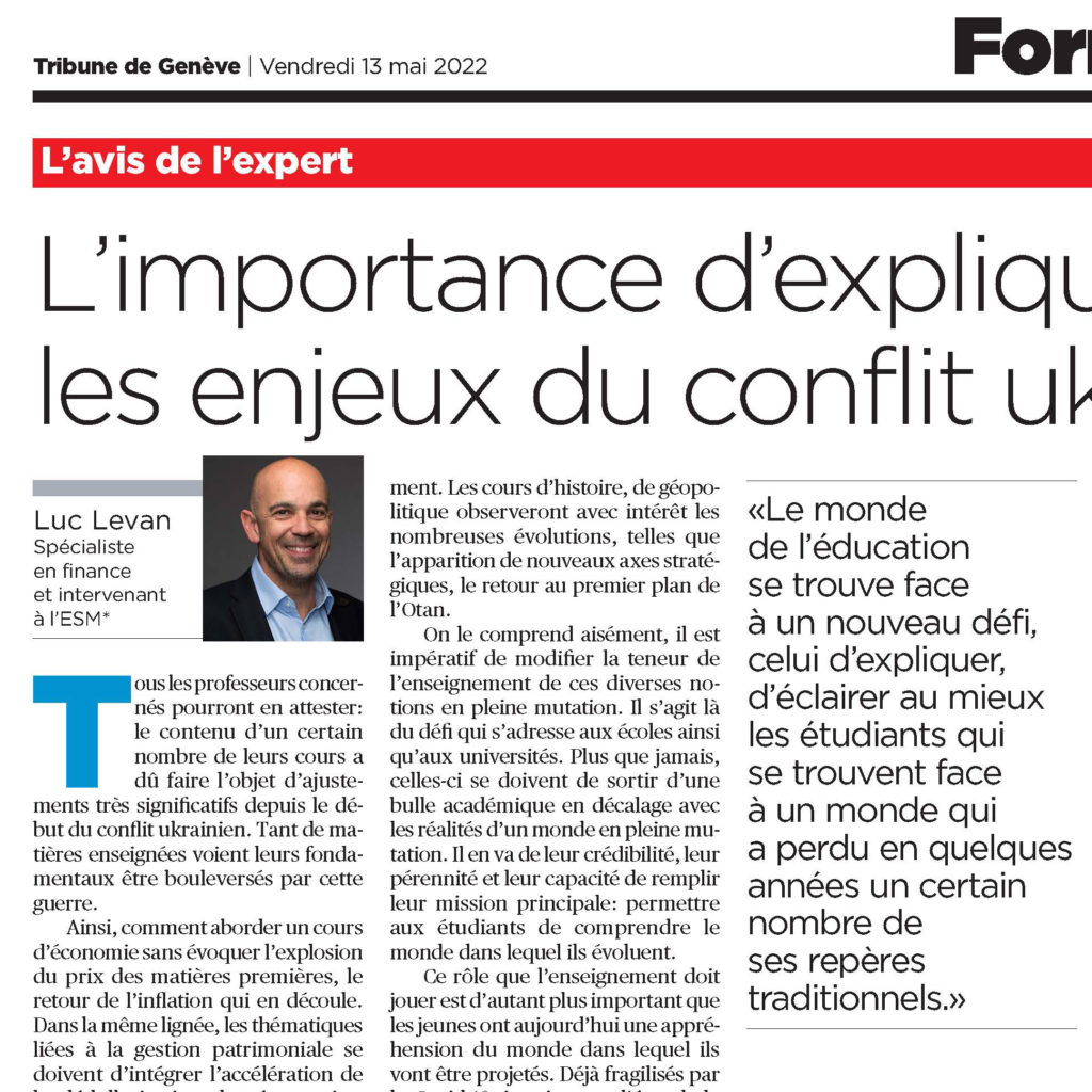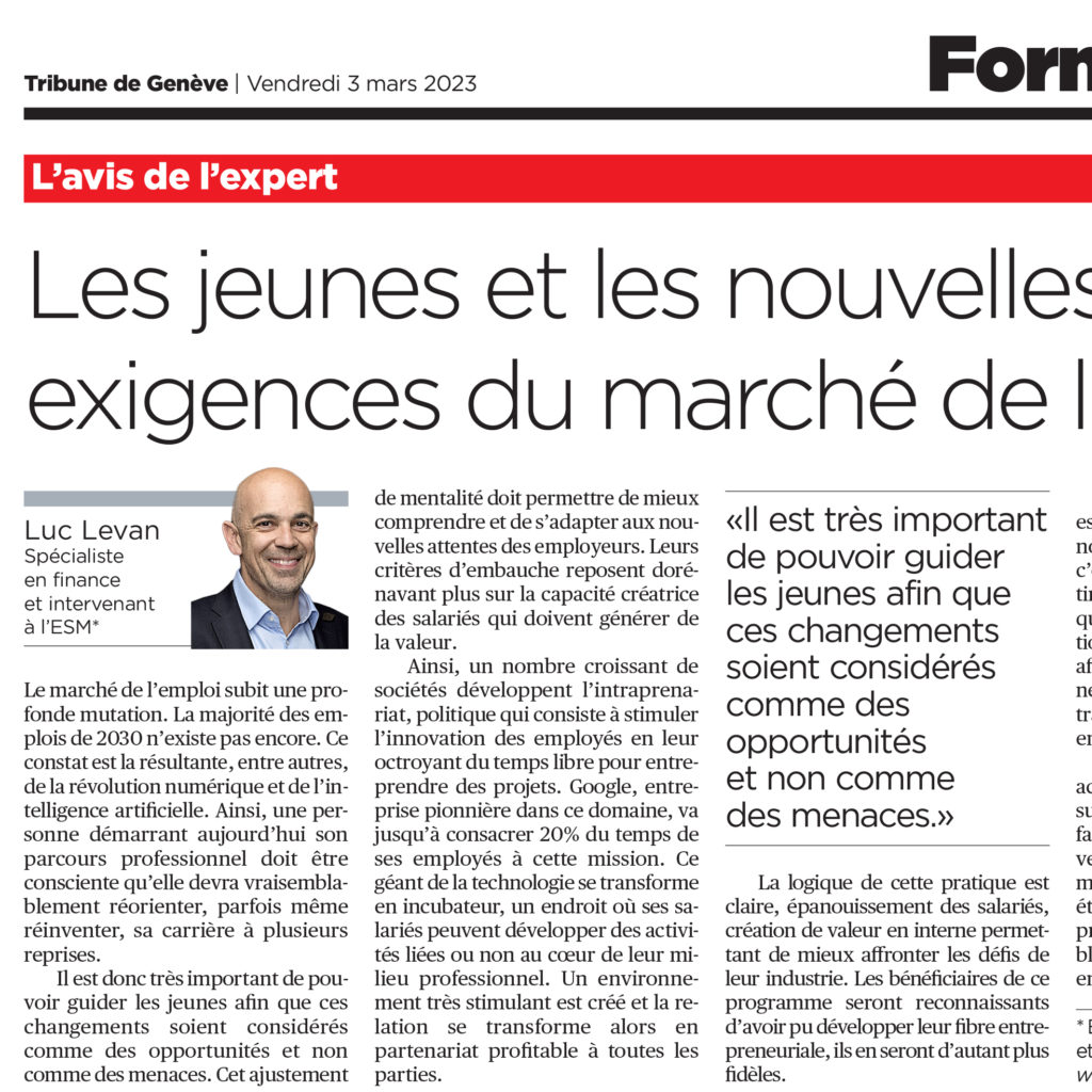 Luc Levan, expert en finance et intervenant à l’ESM, signe une chronique parue dans le 24 Heures et la Tribune de Genève.