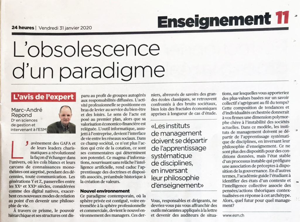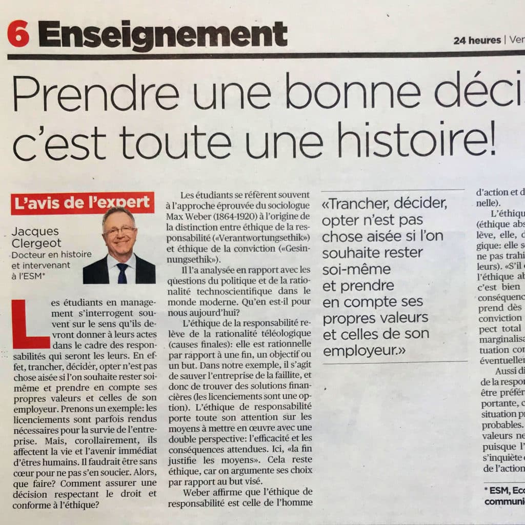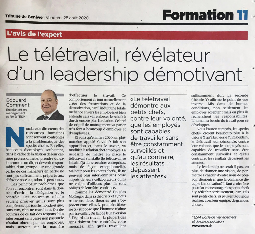24H et Tribune de Genève – Gouverner par conviction ou par crainte ? Le dilemme des entreprises