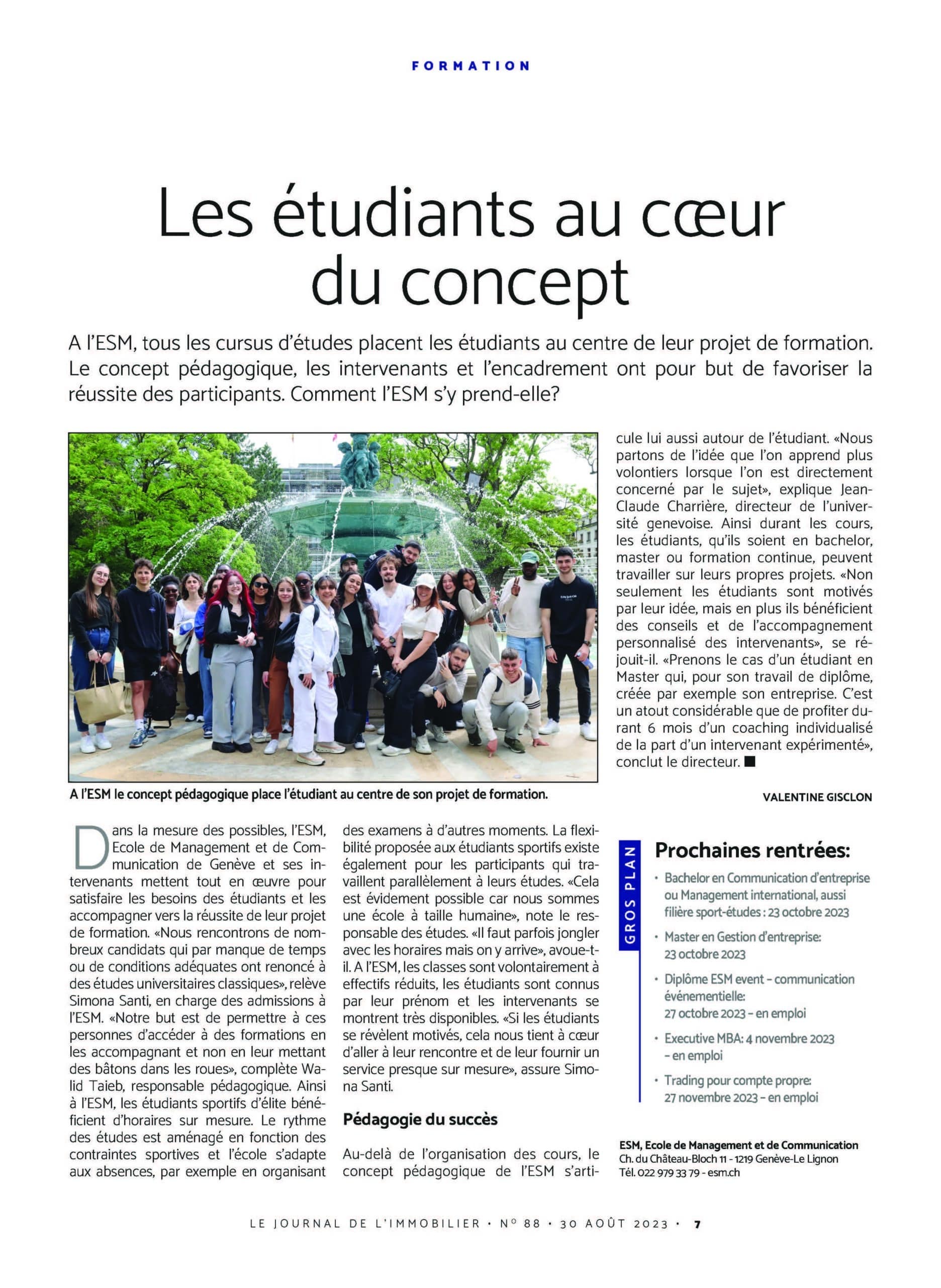 Dans son édition du 30 août 2023, le Journal de l’Immobilier du Temps se penche sur la pédagogie du succès proposée à l’ESM.